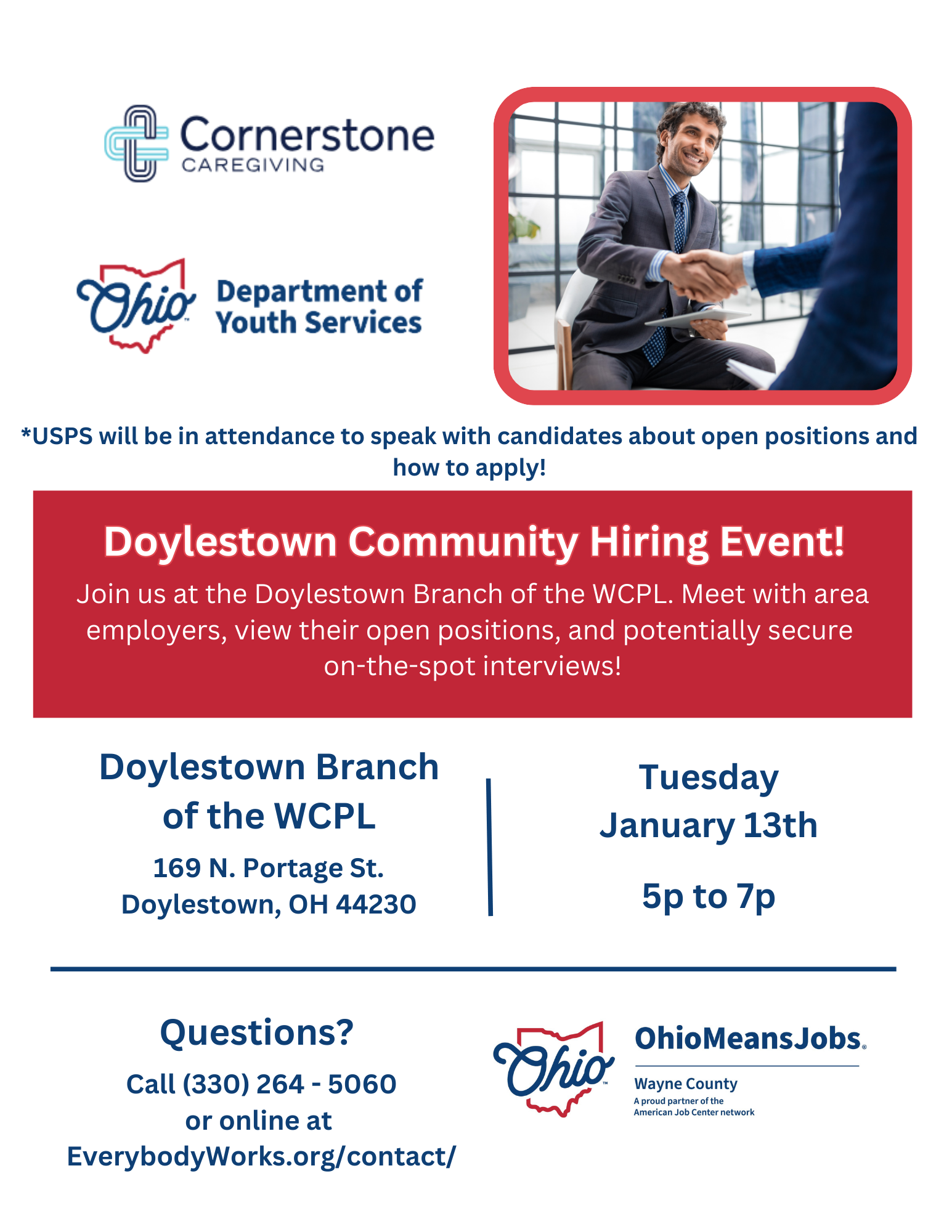 FeaturedDoylestown Library Community Hiring Event 1/13 from 5p to 7p