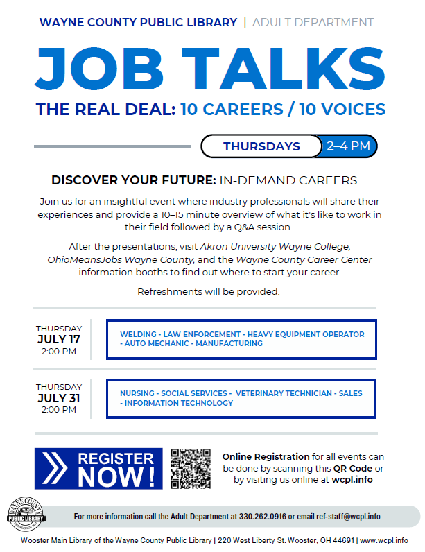 JOB TALKS – WAYNE COUNTY PUBLIC LIBRARY ADULT DEPARTMENT