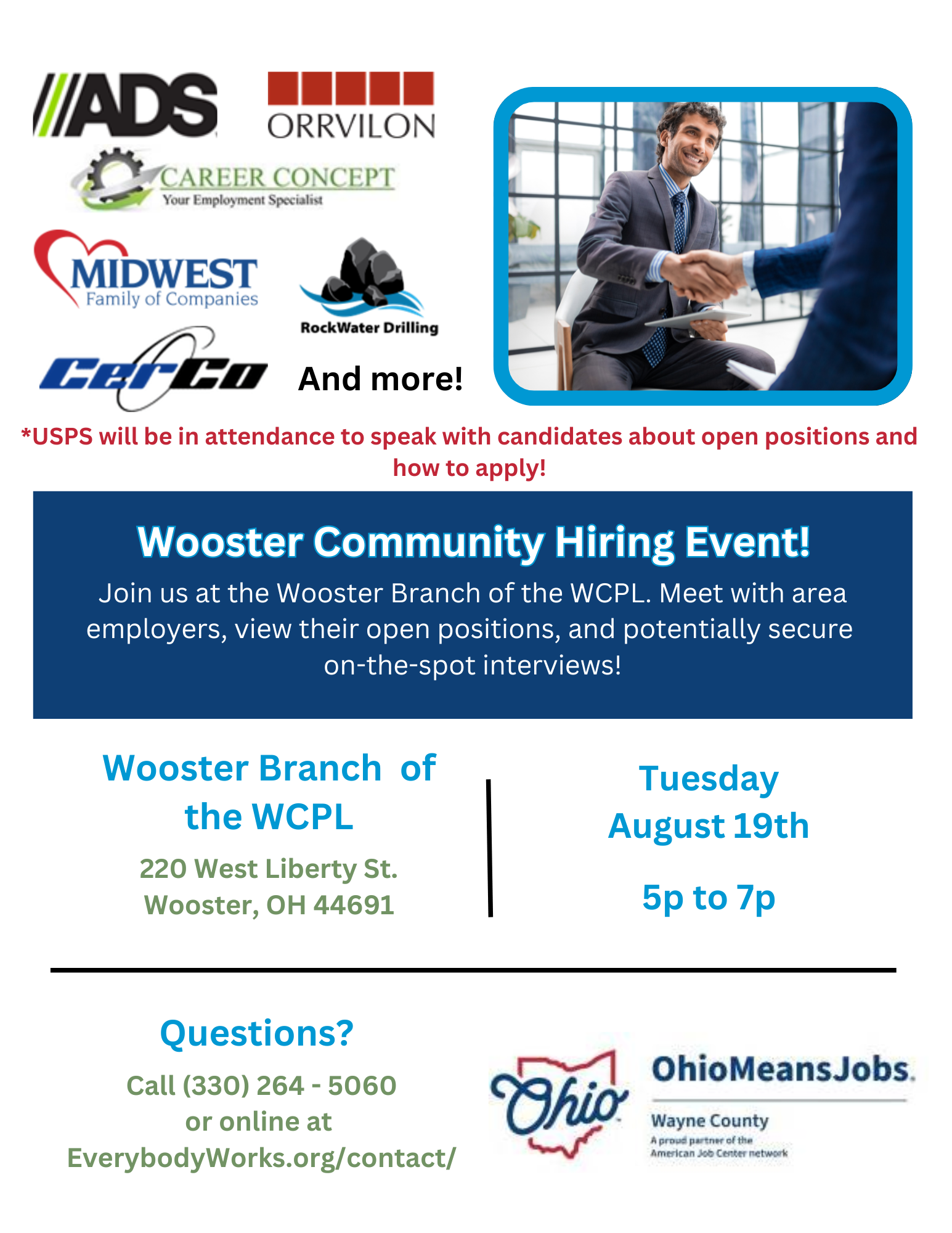 FeaturedWooster Library Community Hiring Event! Tuesday 8/19 from 5p to 7p