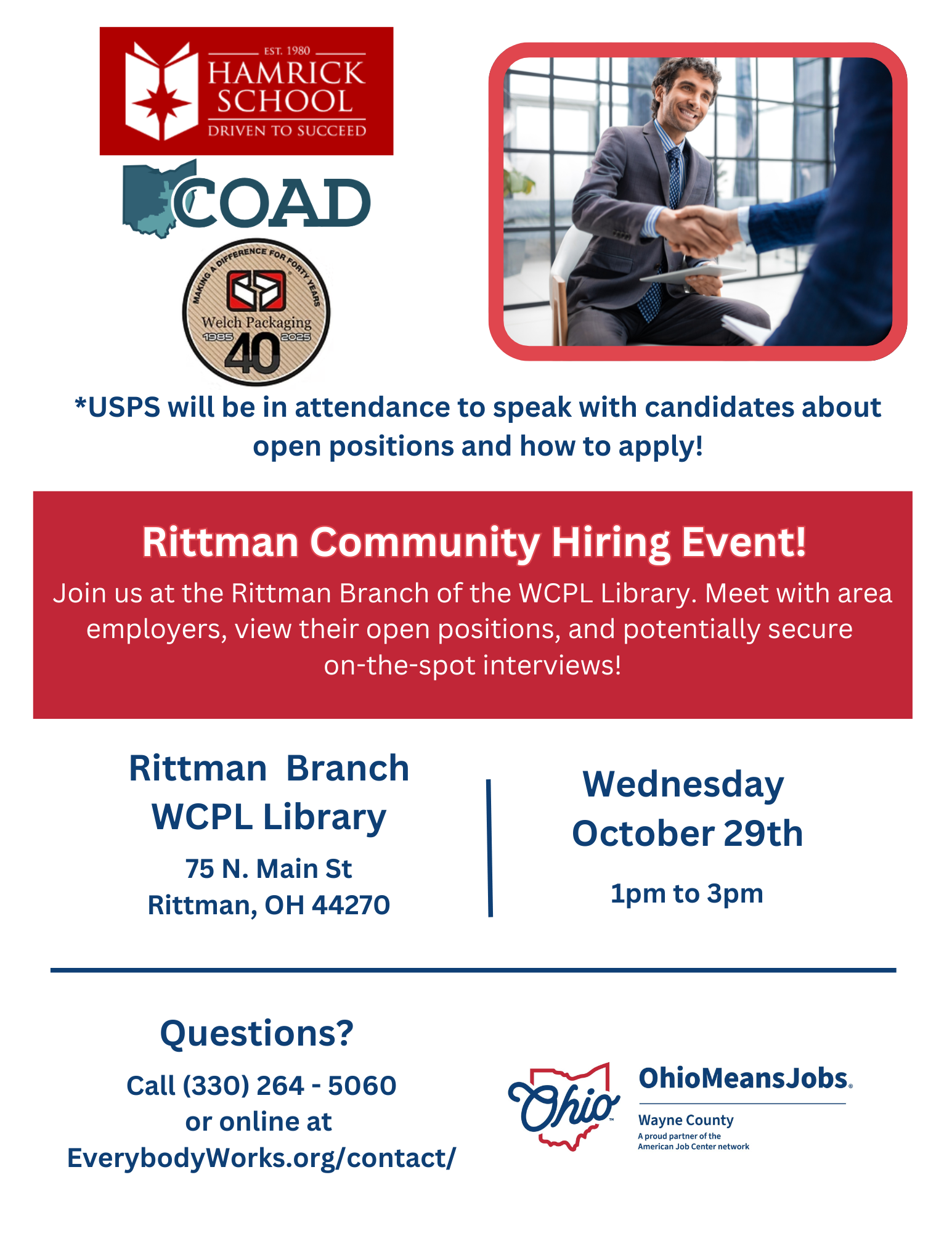 FeaturedRittman Library Hiring Event – Wednesday 10/29 – 1p to 3p