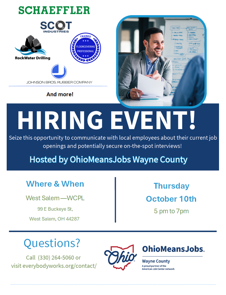 West Salem Community Hiring Event at the West Salem Library! Thursday Oct 10th from 5p to 7p!